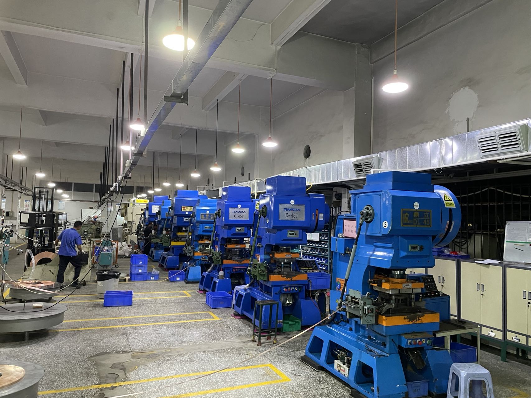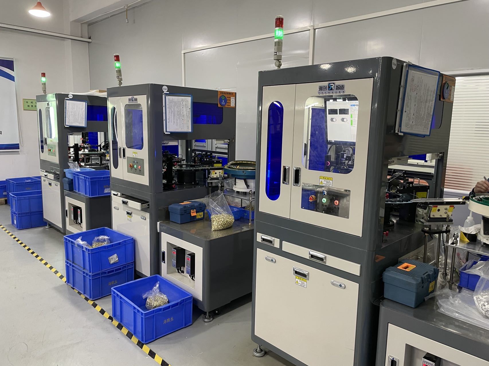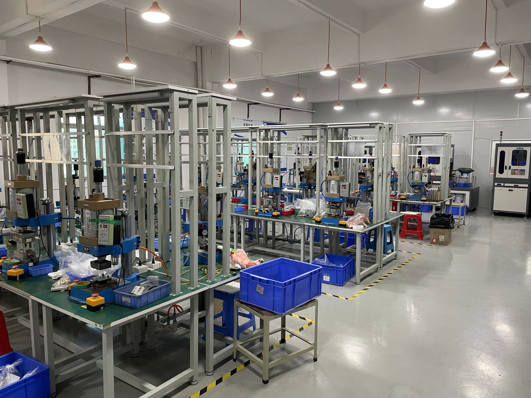 近年来公司各工序实现70%生产工序自动化, 计划到2022年实现85%生产自动化 现有CNC数控车床, 三轴刀库电脑雕刻机, 各类高速精密冲床, 台湾制自动车床, 自制冷镦机 (自有专利机器号: ZL201410715369.0)、半成品及成品组装线, 模具加工设备以及各类生产、研发,检测仪器设备